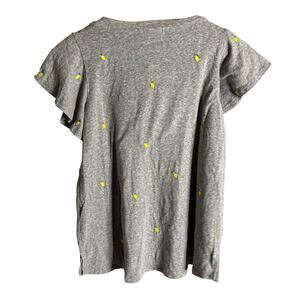 Anthropologie T.La Wayfaring Tee in Gray Lemon. Size XS / Extra Small. Features deep V-neck, short flutter sleeves, and embroidered lemons throughout. 50% Polyester, 38% Cotton, 12% Rayon. NWT / New with tags.