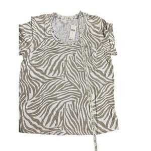Anthropologie T.La Zebra Print Pocket V-Neck Short Sleeve Tee Shirt NWT small