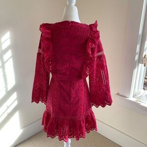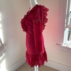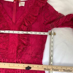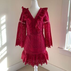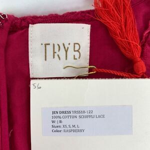 New with tags sample piece by the brand TRYB. Jen dress Raspberry pink v-neck ruffle eyelet Schiffli lace top. Substantial cotton. Lined. Back zip.