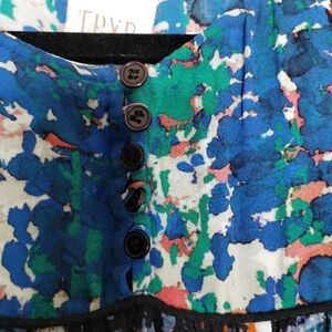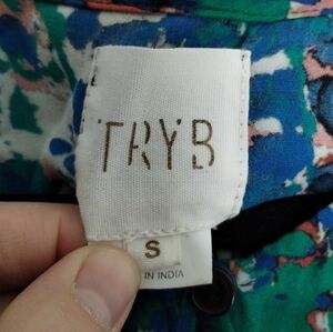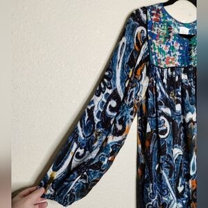 Anthropologie TRYB Silk Flowy Patterned Long Sleeve Dress Women's Size Small