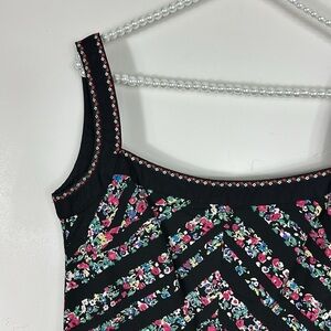 Anthropologie Tabitha Black Floral Chevron Pattern Shift Midi Dress 8P. Fully lined. 100% cotton, super soft!!. Hidden zipper in back. Such a pretty dress in excellent condition - like new