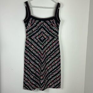 Anthropologie Tabitha Black Floral Chevron Pattern Shift Midi Dress 8P