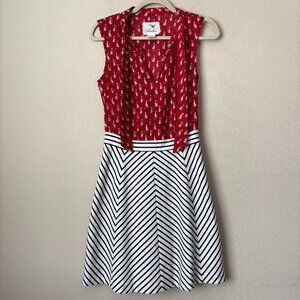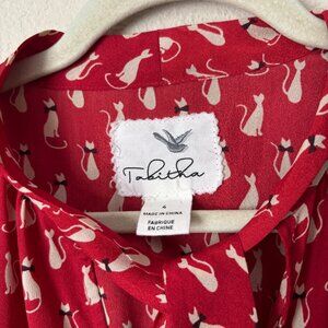 Anthropologie Tabitha Cat Gatto Printed Novelty Dress Striped Tie Neck HTF Rare