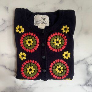 Anthropologie Tabitha Embroidered Soleil Cardigan, Navy, Size M