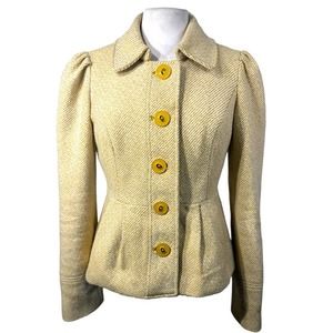 Anthropologie Tabitha Flecked Peplum Button Jacket Yellow Size 2