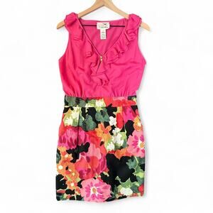 Anthropologie Tabitha Great Escape Sheath Dress Pink Black Zip Ruffle Floral 6