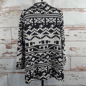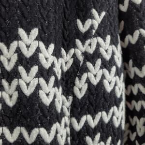 Anthropologie Tabitha Knit Sweater Coat. Long knit Jacket in black and white pattern. Thick and heavy. Front patch pockets, button closure. Excellent Preowned Condition, no flaws. Size Large