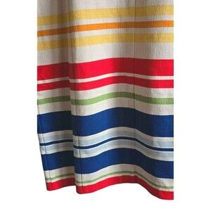 This Anthropologie Tabitha Rainbow Dress is a stunning addition to any wardrobe. The dress features a sleeveless, scoop neck design with a zip closure and a colorful, striped pattern. The red dress is made from a comfortable polyester blend material and is machine washable for easy care.
