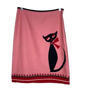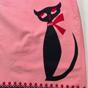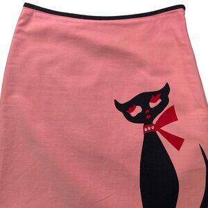 Anthropologie Tabitha Retro Black Cat Pencil Skirt in Rose Size 2 Mod 50's Vibe