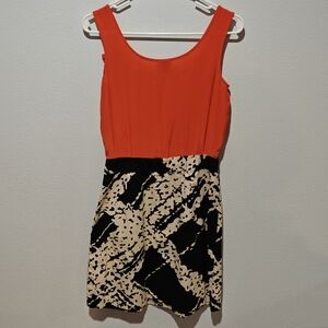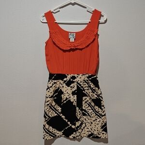 This Anthropologie Tabitha dress is a stylish size 4 piece, perfect for a polished yet unique look. Made of silk, it features a vibrant orange bodice paired with a black and white marble-patterned skirt, creating a bold yet sophisticated contrast. Designed with practicality in mind, it includes functional pockets for added convenience. The dress is versatile for various occasions, offering a flattering fit and eye-catching design. A standout piece for any wardrobe!