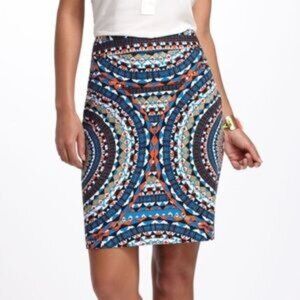 Anthropologie Tabitha pencil skirt. Size 8. Olmeda straight Mosaic colorful print. Side zipper closure. Fully lined. 100% cotton, 100% acetate lining. Dry clean or use dryer cleaner cloths such as Dryel or Woolite.