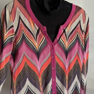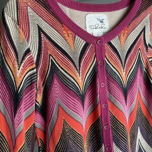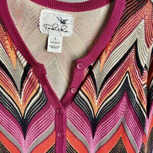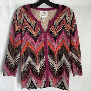 Anthropologie Tabitha Sweater Button Up Cardigan Size S Multi Chevron Fall Retro