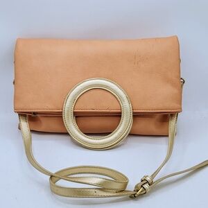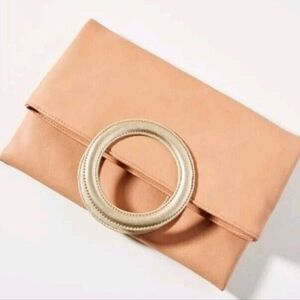 Anthropologie Tabitha Tote Foldover Clutch Crossbody Bag In Blush/Gold
