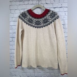 Anthropologie Tabitha Webb Cream Red Blue Fair Isle Preppy Ski Wool Sweater L