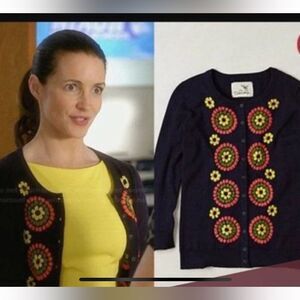 Anthropologie brand Tabitha Embroidered Floral Button Down Navt Cardigan in size medium.
