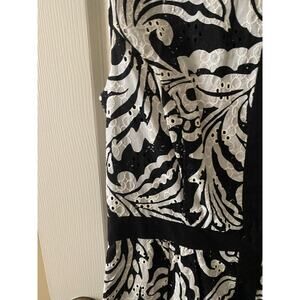 This dress is a size 6 and has a zip closure for easy wear. The dress is made from 100% cotton material.
