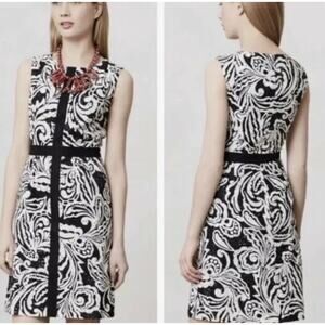 Elevate your wardrobe with this Anthropologie Tabitha lace mini dress. This sleeveless sheath dress features a scoop neckline and strappy sleeves for a feminine and elegant look. The dress is made with a beautiful lace eyelet overlay with embroidered accents, and is lined for comfort. The dress is perfect for any occasion, whether it's a casual day out or a business meeting.