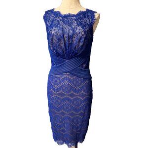Tadashi Shoji Royal Blue Nude Lace Sheath Dress 6 Small
