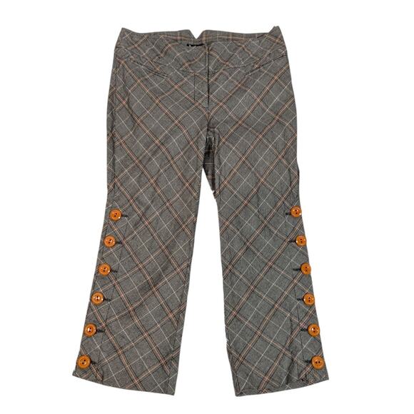 Anthropologie Taikonhu Plaid Cropped Pants Button Detail Gray Orange Sz 4