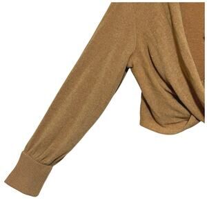 Anthropologie Tan Cropped Twist Front V-Neck Long Sleeves Sweater Size Medium