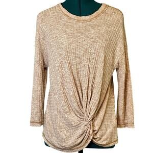 Anthropologie Tan Ribbed Knit Twist Front Long Sleeve Top Women’s Medium