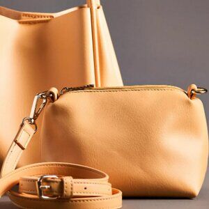 Stylish tote bag by Anthropologie. Smooth leather finish. Perfect for everyday use.