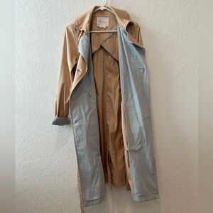 Anthropologie Tan Trench Coat with Contrasting Cuffs and Classic Styling