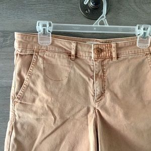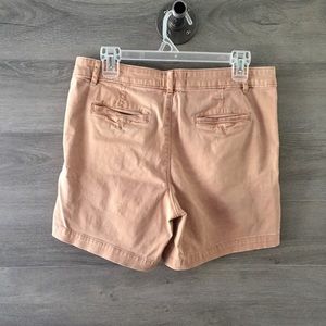 Stylish tan shorts. Features button closure. Perfect for casual wear.