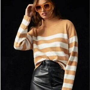 Anthropologie Tan and White Striped Turtleneck Sweater