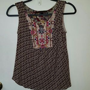 A Common Thread Anthropologie bohemian style printed tank top with embroidered detail in the front. Gently used and in great condition. Size X-SMALL
