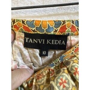 Anthropologie Tanvi Kedia Boho Beaded Knee Length Pleated Zippered Skirt Sz. 10