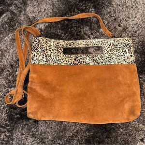 Anthropologie Tara Tan Leopard Suede Leather Clutch Crossbody Bag Western Boho