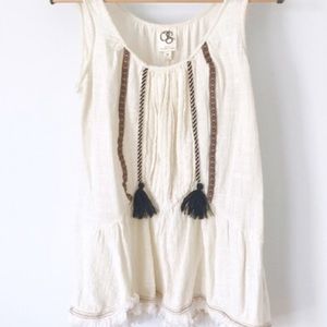 Tassel tank with subtle fringe hem. By One September. Worn a handful of times. Purchased at Anthropologie.