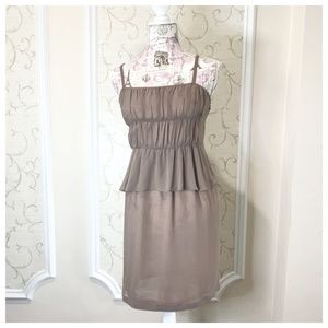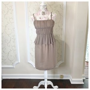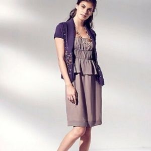 Anthropologie Taupe Tiered Silk Peplum Dress 2