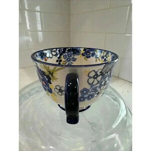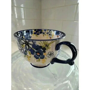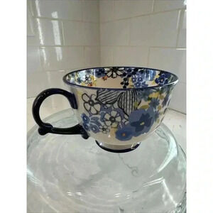 This Anthropologie tea/coffee mug features a beautiful floral design with a monogrammed 'H'. The round ceramic mug is perfect for any occasion and holds up to 11 oz. It's a great addition to your collection of contemporary style mugs, with a blue color and a food & drink theme. The mug is personalized and makes a great gift for someone special. The set includes a coffee mug and is perfect for tea lovers or coffee enthusiasts.