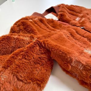 Design/Style: Oversized fit, slightly cropped, faux fur, lined, full zip, pockets, ribbed cuffs/hem/collar, non-stretch.