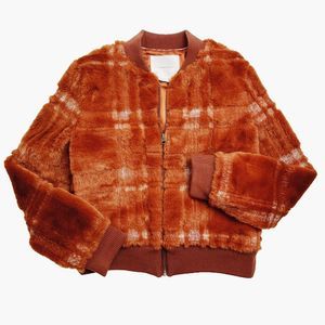 Anthropologie Teddy Bomber Jacket Pockets Lined Plaid Orange Red XS