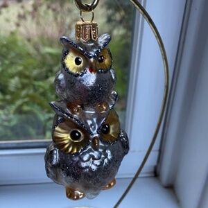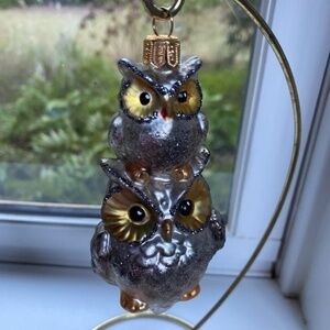 Anthropologie Terrain Glass Blown Owl Christmas Tree Ornament