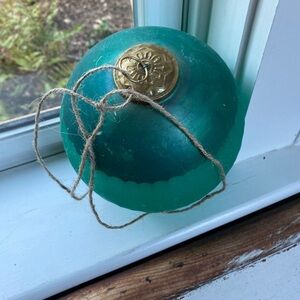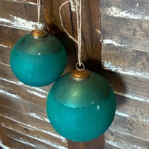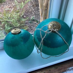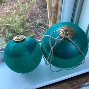 Set of two extra large glass ornaments, These were purchased at an Anthropologie warehouse sale. They are made of a thick textured glass and are very ,very heavy. (they have the feel of recycled glass). I do not feel they are made for standard tree, They are more of a decoration and would be displayed on a mantle or in a bowl or arrangement.