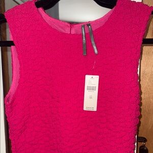 Bold pink mini dress with textured fabric. Sleeveless design. Perfect for a stylish look.