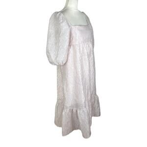 Anthropologie Textured Puff-Sleeve Midi Dress Light Pink Size Medium NEW