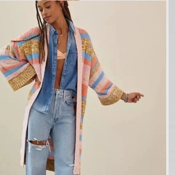 Anthropologie Textured Stripe Open Front Cardigan One Size OS