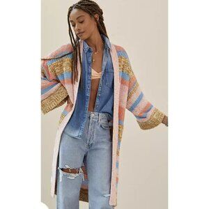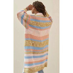 Anthropologie Textured Striped Open Front Cardigan Womens Size OS Beach Slouchy