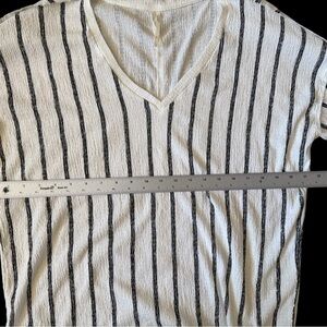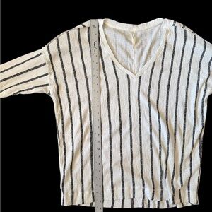 Anthropologie top XL, striped blouse, long sleeve v-neck shirt, minimalist boho top, textured knit pullover, white black stripe top, women’s casual fall blouse