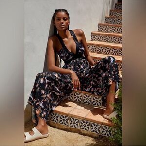 Anthropologie The Brinley V-Neck Floral Black Jumpsuit NEW Size Small