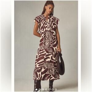 Anthropologie The Cassandra Maxi Dress Zebra Print Ruffled Hem Brown Motif 3X