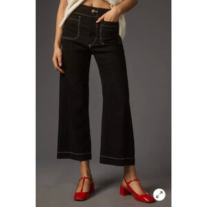 Anthropologie The Colette Contrast-Stitch Cropped Wide-Leg Pants by Maeve 26 NEW