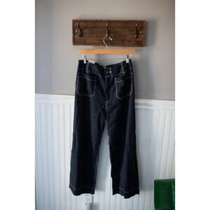 Anthropologie The Colette Contrast-Stitch Linen Crop Wide-Leg Pants by Maeve 29
