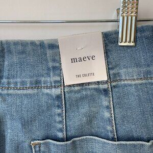 Anthropologie Maeve The Colette cropped wide-leg jeans in a light to medium blue denim wash (99% cotton, 1% elastane) with high-rise tailored fit and front zip closure. Size 29 (waist: 14 in, inseam: 25.75 in)