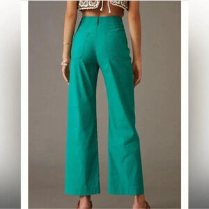 Anthropologie The Colette Cropped Wide Leg Pants Maeve Linen Edition Green